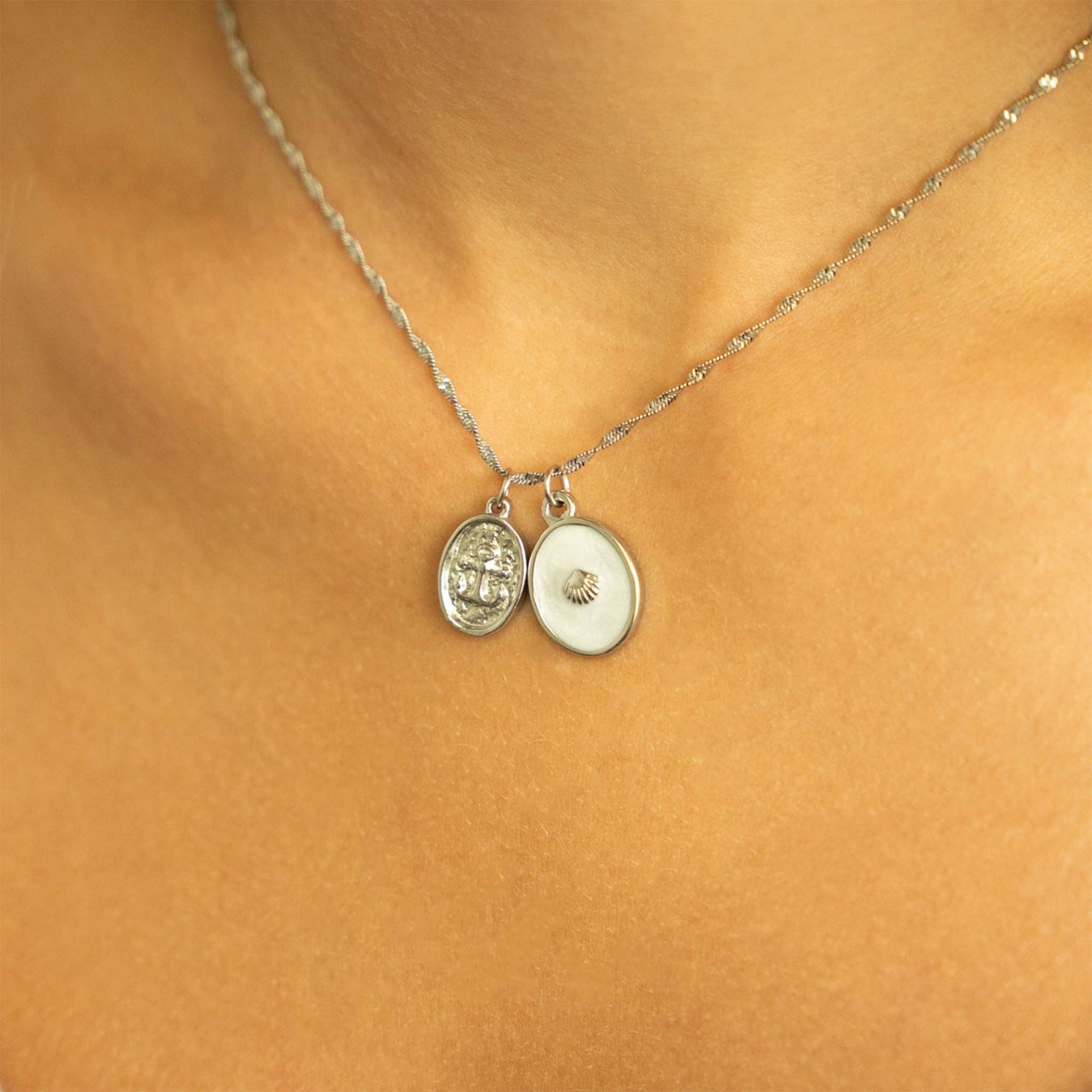18K Gold PVD Stainless Steel White Enamel Charm with Shell