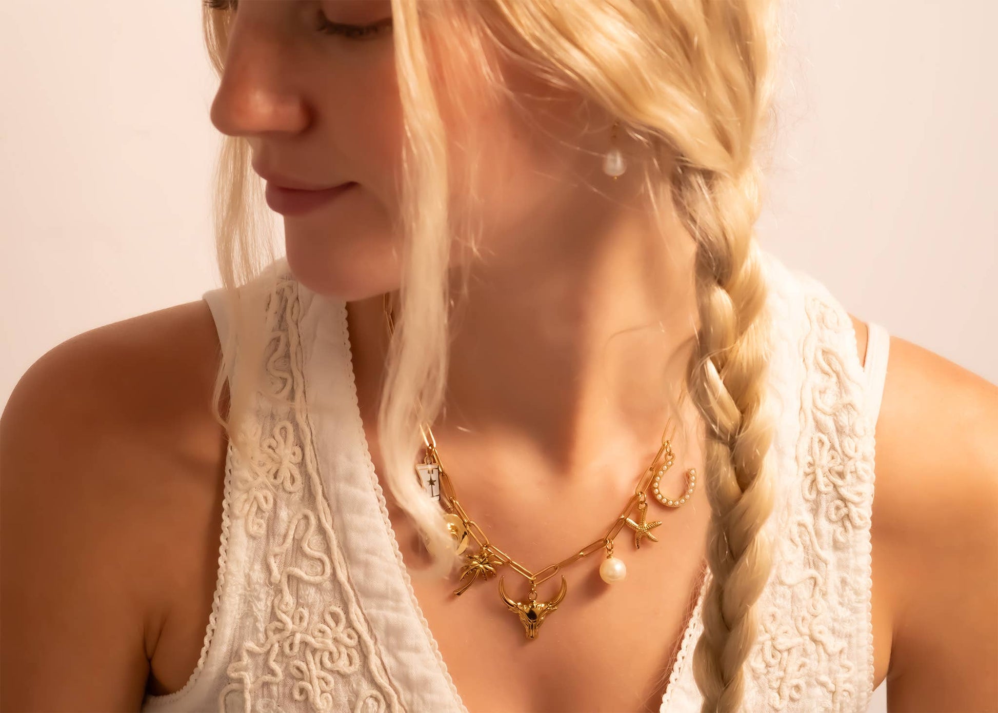 Personalize your necklace or bracelet with our glass pearl charms! Featuring 18K Gold PVD-coated stainless steel or classic silver stainless steel accents. Our 8mm pearls come with a gold or silver hoop, allowing effortless pairing with any of your charm jewelry items. Our selection includes White colored Pearls with stainless steel or Kiska colored pearls with 18K gold-coated stainless steel. Pairs well with our easy-opening charm keeper necklaces and bracelets. • Waterproof, non-tarnish, hypoallergenic • 18K Gold PVD-coated 316L Stainless Steel • Great for accenting chain necklaces and bracelets • Pearl Size: 8mm Weight: 1 gram Jump Ring Size: 5mm